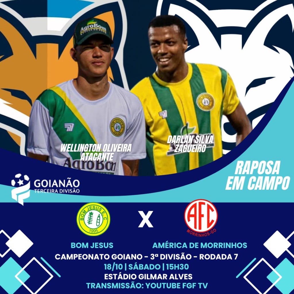No mesmo horário pela sétima rodada da terceira divisão do Campeonato Goiano, o zagueiro Darlan Silva e o atacante Wellington Oliveira estão relacionados pelo Bom Jesus, para encarar o América de Morrinhos, no Estádio Gilmar Alves. O volante Pedro Matielo por sua vez, cumpre suspensão pelo terceiro cartão amarelo.